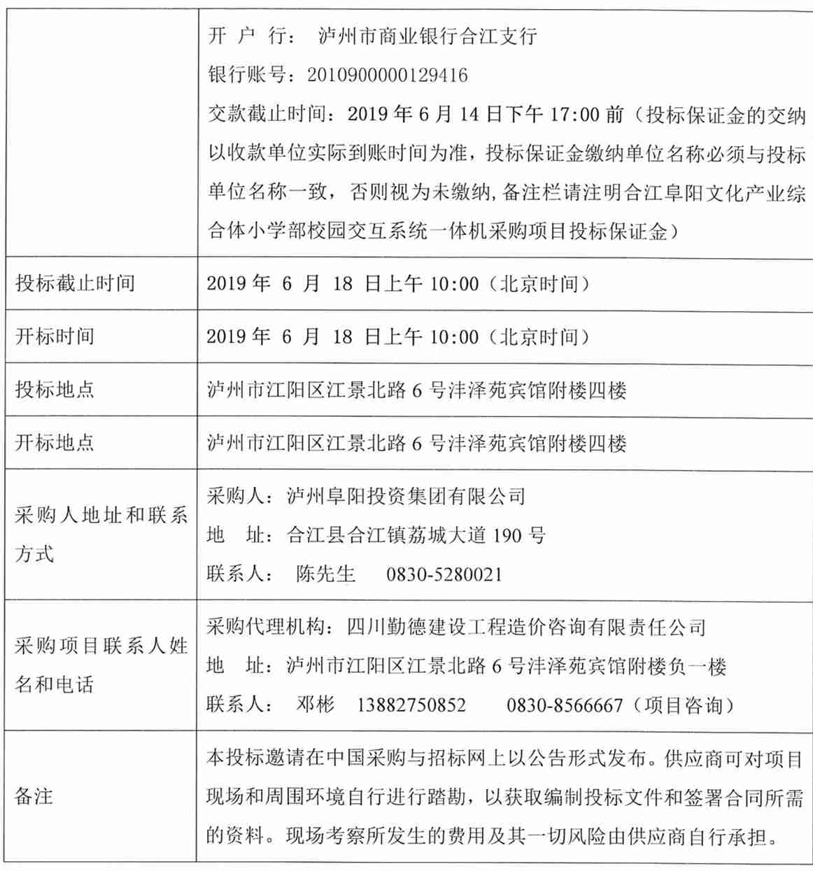 合江阜陽文化產(chǎn)業(yè)綜合體小學部校園交互系統(tǒng)一體機采購公告