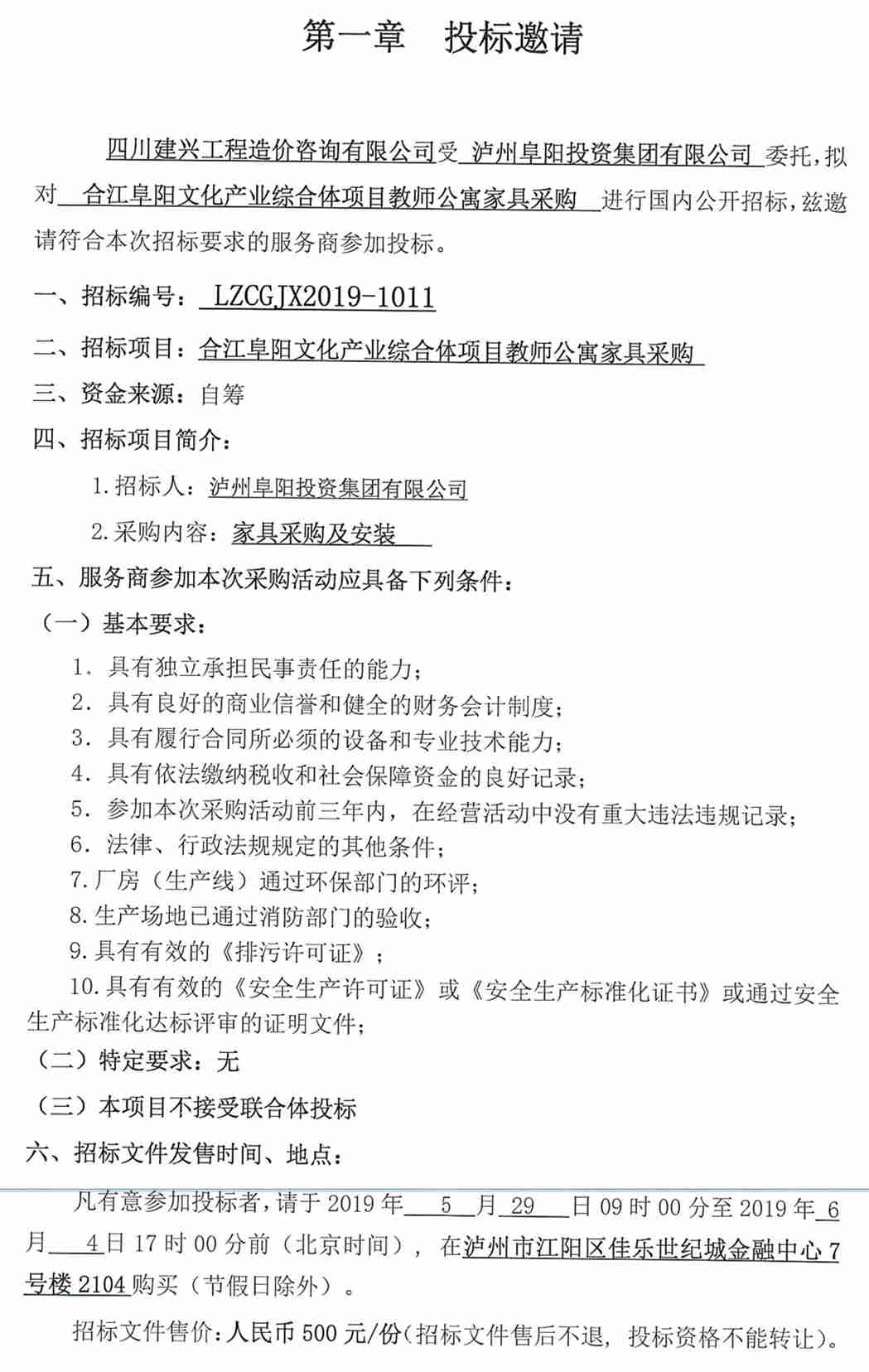 合江阜陽文化產(chǎn)業(yè)綜合體項目教師公寓家具采購