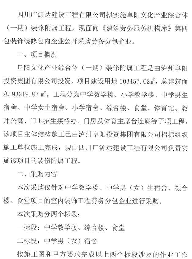 阜陽(yáng)文化產(chǎn)業(yè)綜合體(一期)裝修附屬工程勞務(wù)分包企業(yè)采購(gòu)公告.docx