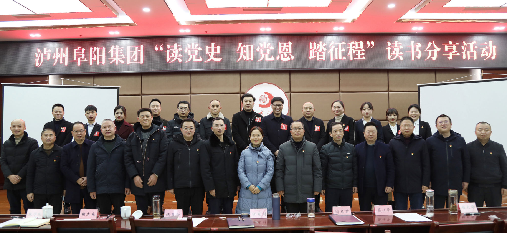 2022年1月6日,阜陽集團黨委組織全體黨員在政務中心15樓會議室舉辦“讀黨史 知黨恩 踏征程”讀書分享活動,集團公司全體黨委委員、各黨支部書記、各二級公司董事長參加活動。