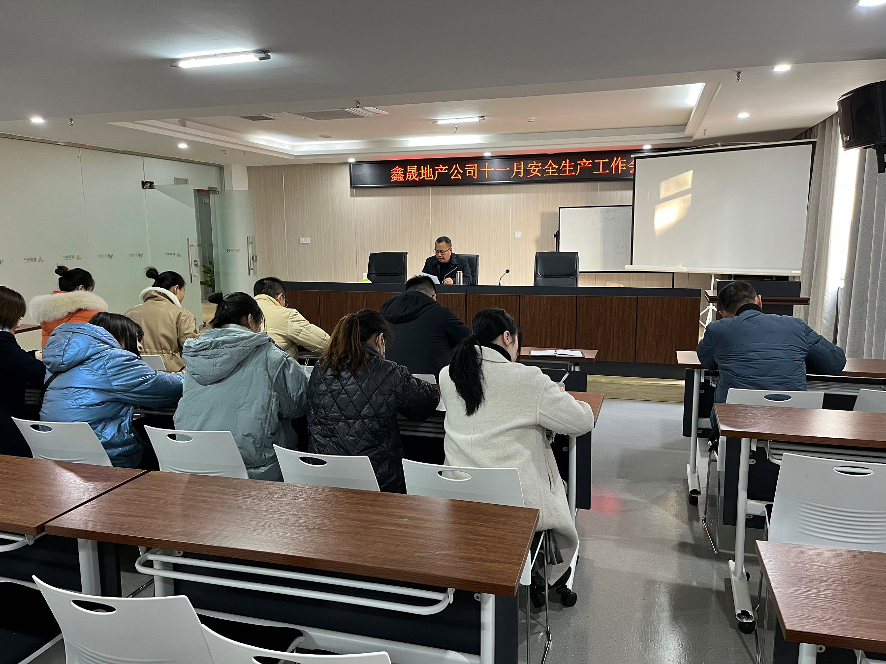 2021 年 11 月 30 日, 瀘州鑫晟房地產(chǎn)開發(fā)有限公司組織召開 十一月安全生產(chǎn)工作會,會議由董事長任東財主持,公司全體員 工參加。