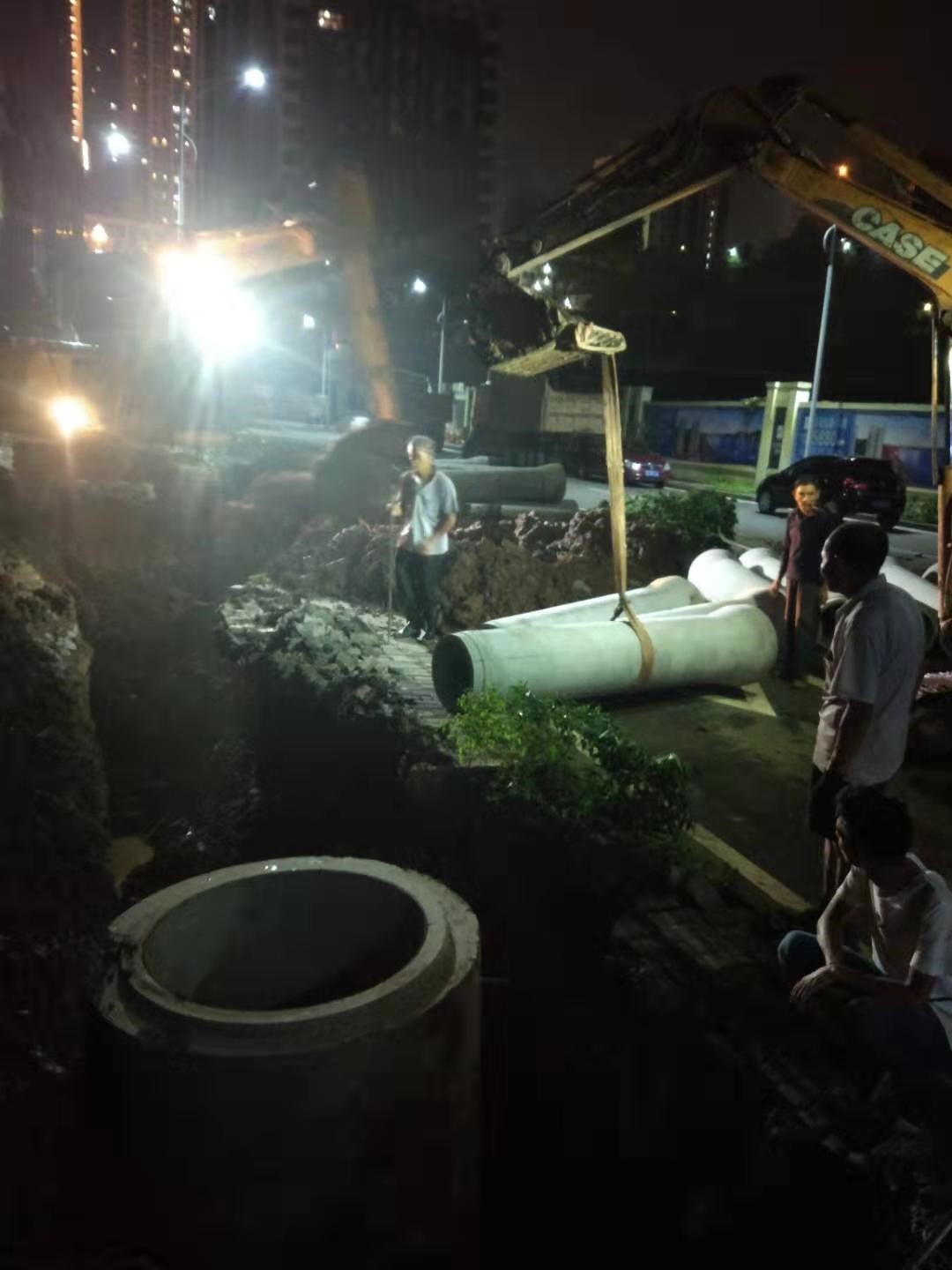 2019年7月15日晚,合江鎮(zhèn)菜壩社區(qū)軍民街因污水管道堵塞導致污水外溢。合江縣城市開發(fā)投資(集團)有限公司接到通知后,積極響應縣綜合執(zhí)法局指令,立即組織施工隊伍開展應急搶險施工,經過連夜奮戰(zhàn),完成了排污管道的應急搶修工作,解決了該處化糞池經常因上游水量過大導致污水外溢、污染環(huán)境的問題,切實保障了群眾生命財產安全。