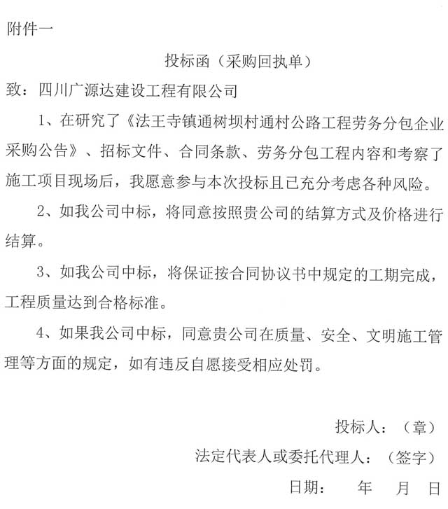 四川廣源達建設工程有限公司法王寺鎮(zhèn)通樹壩村通村公路工程勞務分包企業(yè)采購公告.doc