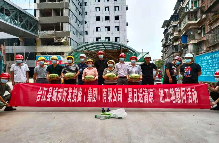 炎炎酷暑,天氣持續(xù)高溫,為切實(shí)做好戶外一線職工防暑降溫工作,2021年8月7日,合江縣城市開發(fā)投資(集團(tuán))有限公司開展“夏送清涼暖人心凝心聚力鼓干勁”活動(dòng),合江縣城市開發(fā)投資(集團(tuán))有限公司董事長(zhǎng)兼總經(jīng)理鞠志良、副總經(jīng)理陳磊、工程部部長(zhǎng)陳云峰等領(lǐng)導(dǎo)為高溫下堅(jiān)守我司建筑崗位等戶外一線職工送去夏日清涼,送去公司的關(guān)懷。